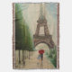 Torre Eiffel - Paris France, e amantes sob o guarda-chuva vermelho - arte acrílica da pintura em canvas. Skyline de Paris. Marco. Pessoas. Chuva em Paris.