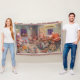 Cobertor Natal Antigo, Papai Noel com Oficina dos Elfos
