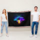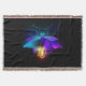Voz mecânica, antiga, com lâmpada e asas finas brilha cor de laranja, roxo, turquesa sobre fundo preto. Estilo Steampunk.