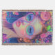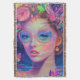 Um incrível retrato surreal de fantasia de uma mulher radiante adornada com óculos pastéis brilhantes e uma coroa de flores e frutas neonatais. Composta a uma paisagem de sonho floral cósmica com borboletas flutuantes, este trabalho de arte digital explode com cor, magia e energia feminina.
