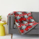 Um padrão muito festivo de homens de neve, dançando na neve e cercados por árvores prateadas de Natal. Este cobertor de Natal vermelho e bonito vai definitivamente adicionar um toque de alegria de férias à sua casa para o feriado.