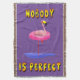 Traga humor e charme para o seu espaço com este design de "Ninguém é Perfeito" esquisito, com um flamingo relaxado flutuando em um anel de natação rosa. Colocado contra um fundo roxo arrojado com letras amarelas divertidas no estilo 3D, esta design divertida e atraente é perfeita para amantes flamingos, vibrações de verão, e qualquer um que abraça a imperfeição com um sorriso. Ideal para presentes, decoração doméstica e acessórios!