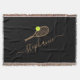 Nome personalizado do monograma em um cobertor confortável com um logotipo simples e moderno de raquete e bola e uma letra elegante de escrita feminina de caligrafia feminina em ponto neutro que castanho e preto.