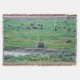 Fotografia de uma manada de Bison pastoreando, descansando e socializando perto de um rio na área do Vale do Lamar, localizada no Parque Nacional de Yellowstone. Imagem Copyright ©2018 Kimberly J Tilley.