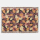 Uma simples ilustração das folhas em castanho-do-cacau, laranja e amarelo-claro contra fundo preto.
