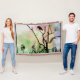 Solitário corvo em um galho na silhueta contra um céu bokeh colorido do sol enquanto um Excelente Blue Heron voa... Feito combinando duas fotos que tirei juntas e algumas cores de edição