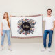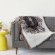 A ilustração é feita com aquarelas e guaches no papel. Indigo, ostro e folhagem laranja e flores com uma mão escrita como olá de ouro no meio.