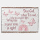 Monograma para que você insira sua própria oração, se você assim o desejar, jogue cobertor. Este tema fofo com um arco-íris e borboleta cor-de-rosa, e texto rosa-escuro num fundo branco, afirma, Caro Deus, quando estou triste, ajude-me a ver a sua luz. Me enrole em seus braços tão apertado!