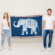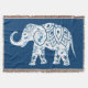 Stunning ethnic art throw with decorative henna tattoo style elephant on dark blue background.