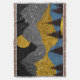design de paisagem da montanha abstrato em tons de ouro, preto e azul em tons negros, com um luar e pássaros.