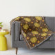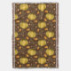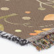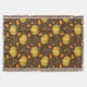 Um padrão festivo de abóboras ouros, folhas e corações laranja, e bagas de queda sobre fundo marrom.