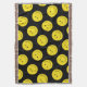 Não se esqueça de sorrir! Este design apresenta um padrão de faces sorridentes amarelas sobre um fundo preto.