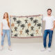 Cobertor com padrão divertido da selva com macacos estilizados e palmeiras em carvão e terracota em um fundo de creme texturizado. Caprichoso e terroso com uma estética boho artesanal, este design contínuo é ideal para crianças, amantes de animais, entusiastas de safári e fãs de temas divertidos da selva.