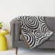 Em preto e branco, um padrão geométrico formando círculos aninhados regulares decora o cobertor. O resultado é um cobertor ousado da tendência. Para todos que gostam do padrão design em branco combinado com uma cor de sua escolha para combinar ou redefinir a cor do sotaque da sua sala de estar, em seguida, coloram-no da sua maneira personalizando a cor de preenchimento. Um atributo que funciona fabulosamente também para fortalecer a cor do sotaque da sua sala de estar. Mas também, quando se procura um presente de aniversário, um presente de inauguração ou até um presente de casamento para recém-casados. Para obter ajuda ou consultas personalizadas sobre design, entre em contato com info@kbmd3signs.com