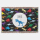 Um bonitinho dinossauros coloridos com padrão de aquarela design com fundo preto. Os dinossauros incluem Tyrannosaurus Rex (T Rex), Brontosaurus, Stegosaurus, Tricerátops, Pterodactyl e muito mais. Design ideal para amantes do período Jurássico, dinossauros, animais e história. Este adorável padrão de dinossauros é perfeito para um presente de aniversário, decoração infantil, arte infantil, decoração doméstica, presente de Natal ou presente para qualquer outra ocasião especial. Personalize o nome e faça dele seu.