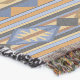 Estilo nativo americano Navajo padrão geométrico sudoeste com tons de terra de areia quente, cinzas ardósias, marrom-ouro e sotaques azuis.