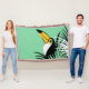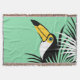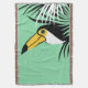 Arte estilizada de aves da selva com um tucano-toco entre grandes folhas de palmeira