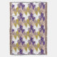Pássaros gráficos com um padrão uniforme. Tesselação com aves bonitinhas em branco (cor personalizável), tons roxos e ouros. Um cobertor personalizável. Você pode mudar facilmente a posição do tamanho do design (dimensionamento) e mudar o fundo da cor (aqui branco). Não se esqueça de toda a coleção de testes de Animais (cão, coelho...).