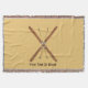 Pincéis cruzados de madeira e bastões de esqui num fundo de pele de fivela. Você pode escolher outra cor de fundo. Adicione seu próprio texto.