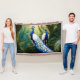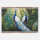um pavão branco elegante e azul penteado numa bela floresta. ARTE AI CRIADA POR MINX267