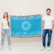 Borda do nó celta trabalha design de peixe entrelaçado em tons de azul, com um grande medalhão de design de peixe circular no centro