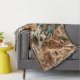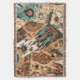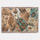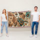 Aztec design tribal nativo americano, com uma manta de retalhos de penas boho, azul e castanho, elementos florais de aquarelas e formas geométricas.