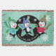 Penguins Holly Jolly Festa de Natal lança cobertor apresenta um belo design com pontos brancos sobre fundo azul, um anel preto, centro de estrelas azul, flocos de neve de branco, três pinguins adoráveis com suéteres, chapéus de inverno, skates de gelo e cachecóis, e um texto branco personalizável que lê "Tenha um Natal Holly Jolly"!