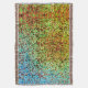 Arte gráfica com pequenos quadrados coloridos indefinidos em verde, laranja, vermelha, amarela, azul e acastanhada claros com alivio claro ou profundidade semelhante a azulejos com tons de vermelho mais escuro.