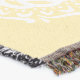 Esta mandala branca senta-se sobre um fundo amarelo claro. As cores são felizes e pacíficas. Parte da coleção Kowas Mandala.