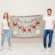 Seis Santas primitivas em ternos vermelhos em uma faixa diagonal de fundo com flocos de neve brancos e texto negro bonito que lê Feliz Tudo em um feriado natalino lança cobertor que é festivo e tão bonito!