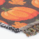 Padrão repetitivo vibrante que apresenta abóboras laranja brilhantes e folhas de outono contra um pano de fundo escuro. Perfeito para temas sazonais, designs de tecido ou decorações festivas celebrando outono e colheita.