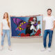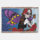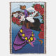 Dia do crânio de açúcar morto com asas de fadas roxas e rosas vermelhas ao redor num pano de fundo de borboletas azuis e monarcas