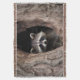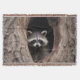 Um jovem guaxinim bonito olhando para fora do dentro da árvore grande.