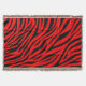 Este cobertor mostra uma impressão de pele vermelha e preta com faixas de zebra sobre o painel frontal, com um toque delicado e suave, que se sente perfeito para picnicias, eventos ao ar livre e óculos confortáveis de inverno. Todos os cobertores são feitos de 75% de algodão, 25% de velo de poliéster com impressão de sublimação de borda a borda e costura resistente de borda dupla tem uma cor de apoio bronzeada.