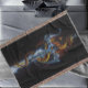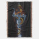 Um pequeno dragão vermelho sentado numa espada com a cauda envolta numa espada.
