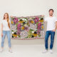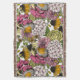 Padrão desenhado à mão com várias flores - hydrangea, anemone, peônia, dália e pássaros-robin