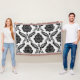A vintage style decorative damask surface pattern influenced by rococo classical design in black detail on a white background.