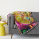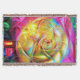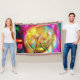 Uma pintura digital mesmerizante de um rosa a explodir com energia psicodélica e matizes arco-íris. As pétalas cor-de-rosa vívidas envolvem um ouro brilhante, criando uma peça central floral surreal.