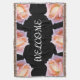 Rosa rosa rosa floresce um fundo e texto personalizados, bem-vindos jogando cobertor.