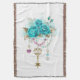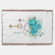 Chave de ouro antiga com rosas de turquesa de tendência, decoradas com folhas de ouro branco e miçangas cor-de-rosa e azuis. Cor agradável. Rosas de turquesa. Ouro branco. Tifania azul.