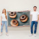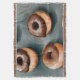 Esta pintura aquosa representa um trio de rosquinhas de chocolate, cada uma com seu sabor e personalidade únicos. A rosquinha de cima é uma rosquinha de cobertura de chocolate clássica, com um interior macio e liso e um exterior rico e chocolatey.