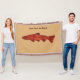Uma renderização digital de uma truta com um olhar antigo rústico. Adicione seu próprio texto.