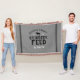 Cobertor de lançamento de Alimentar Rena de faixa de saco de grãos rústico falso. Personalize com o nome da sua família, cidade ou qualquer outro texto personalizado. Observe que a textura sutil do fundo de aniagem é parte do design impresso e o produto não é feito de material de aniagem real. Clique no botão Personalizar para adicionar suas próprias fotos de texto para criar um design único. O toque perfeito para o seu moderno decor de Natal de casa de fazenda!