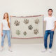 Bring a sense of fun and adventure to a child's bedroom or playroom with this charming safari paw print design. The neutral, textured background provides an earthy foundation for a scattering of playful animal tracks. Each paw print is uniquely patterned with elements like leopard spots and zebra stripes, featuring the signature muted, gender-neutral colors of our collection. This throw blanket is a fantastic addition to your decor, perfect for a modern, boho, or jungle-themed space. Part of our coordinated 'Kid's Safari Decor' collection. Note: design adapted from generative content.