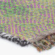 Um padrão geométrico complexo apresenta cores vibrantes, incluindo verdes, púrpuras e azuis, intricadamente tecidos em um design simétrico repetitivo. Pequenos quadrados e círculos formam um efeito caleidoscópico, criando um mosaico atraente para os olhos.
