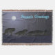 Uma noite de inverno fria e lua; uma mochila na prole. A leitura de texto "Saudações da Estação" aparece em azul e branco brilhantes.