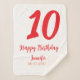 Cobertor Sherpa 10.º aniversário adicionar nome data ano vermelho