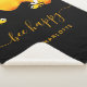 Um fundo preto chic decorado com mel gotejante de ouro. O texto: Bee Happy com um script de estilo com letra de ouro com balsas. Personalize e adicione seu nome ou nome de família.