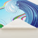 Grande Onda do Mar Azul no Céu tropical e Colorido, e Palmeiras, uma foto perfeita para o período de férias e Surf! Arte Gráfica Original Copyright BluedarkArt The ChameleonArt.