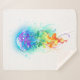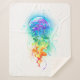 Água-viva grande, iridescente, desenhada artisticamente, brilhante, com longos tentáculos em branco, pintada sobre fundo de aquarela multicolorido. Água-viva arco-íris.